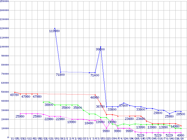 メモリ主要製品の最安値推移