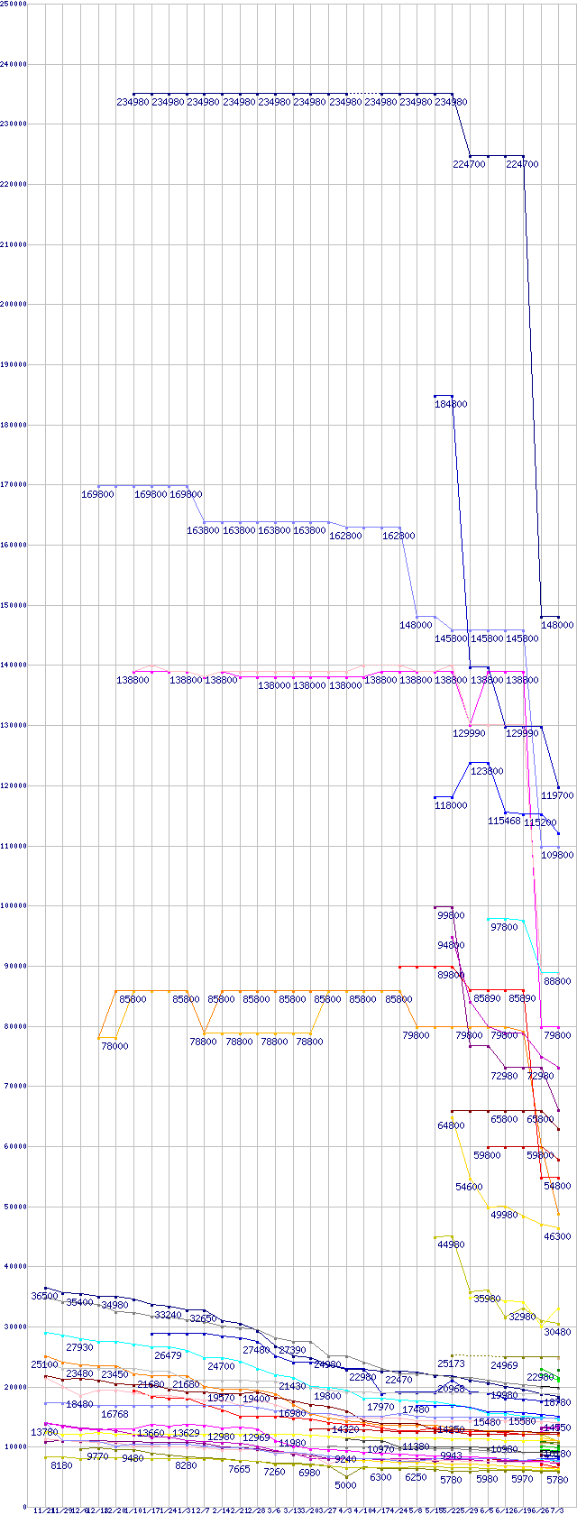 ※製品名をクリックすると個別のグラフを表示します ※点線部は販売店が確認できなかった、または調査データがないことを示します |