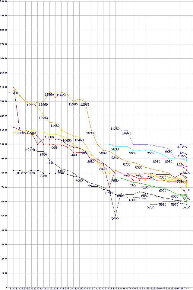 ※製品名をクリックすると個別のグラフを表示します ※点線部は販売店が確認できなかった、または調査データがないことを示します |