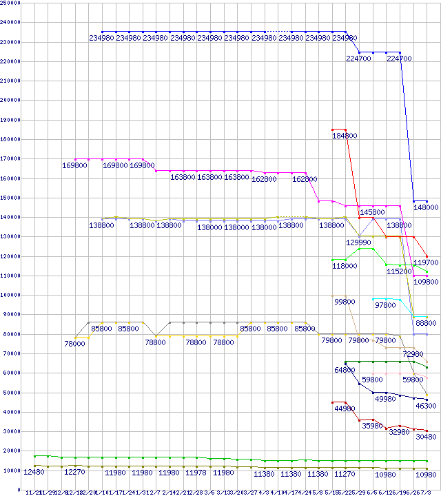 ※製品名をクリックすると個別のグラフを表示します ※点線部は販売店が確認できなかった、または調査データがないことを示します |
