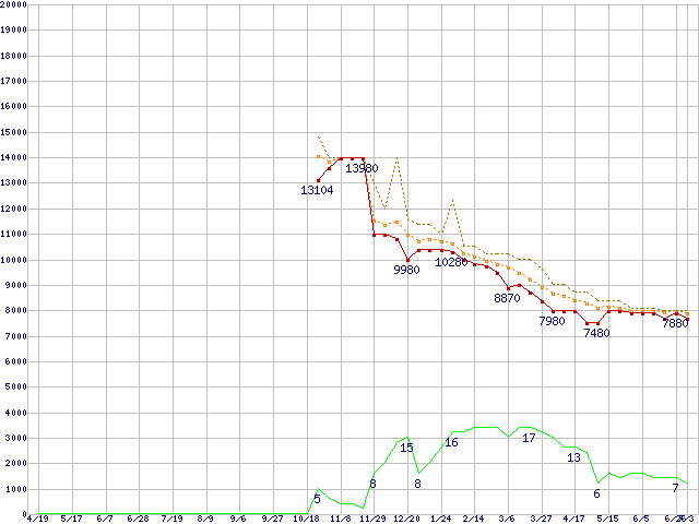| WD5000AACS (500GB,16MB)の価格推移 | | | (2007年4月19日~2008年7月3日) |