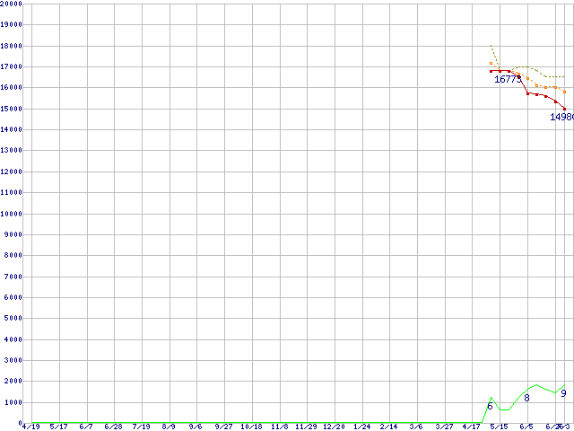 | HD103UI (1TB,32MB)の価格推移 | | | (2007年4月19日~2008年7月3日) |