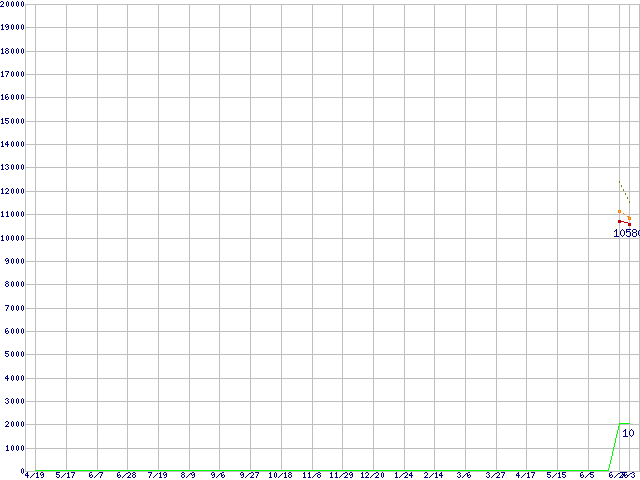 ※このグラフは過去のデータも税率5%相当に調整した税込み相当額のグラフです。 税率変更や、総額表示方式導入(2004年4月)の影響は除いています。 | | | ●凡例 | 最安値 (点線部は販売店未確認 または未調査) | 平均値 | 最高値 | ショップ数 |