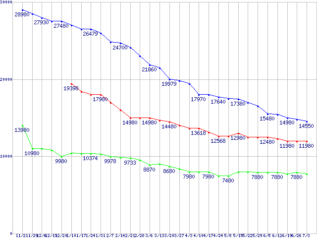 WD Caviar Black (7200rpm,3Gb/s)の最安値推移