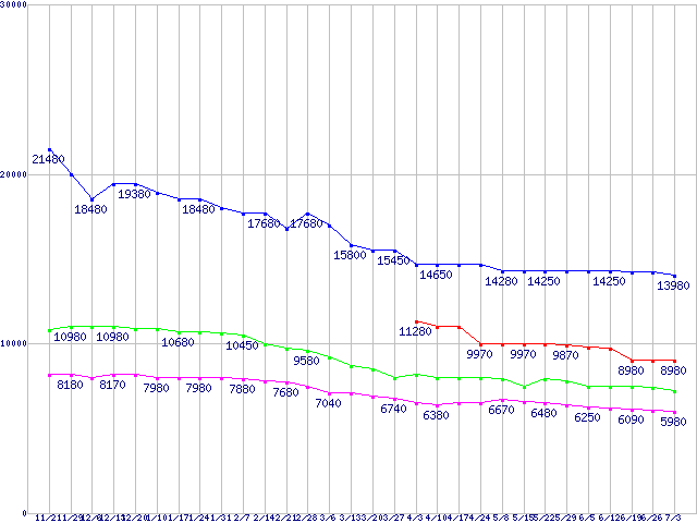 WD Caviar GP (7200rpm,3Gb/s,16MB)の最安値推移