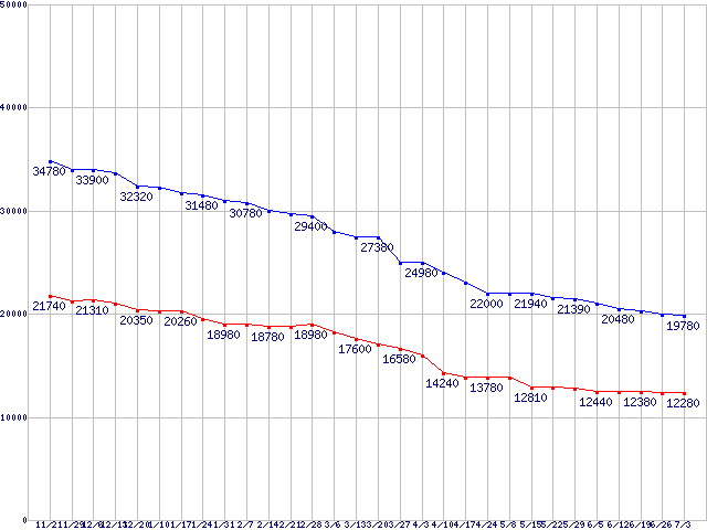 Deskstar P7K500 (7200rpm,3Gb/s)の最安値推移