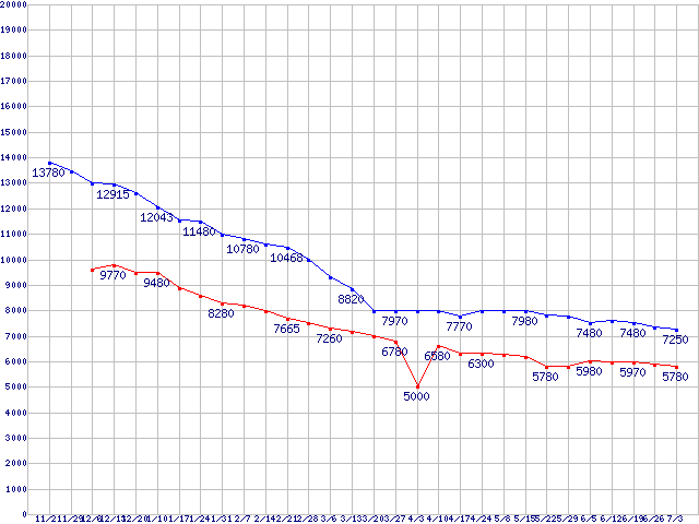 Deskstar P7K500 (7200rpm,3Gb/s)の最安値推移