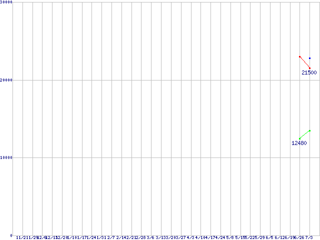Deskstar P7K500 (7200rpm,3Gb/s)の最安値推移
