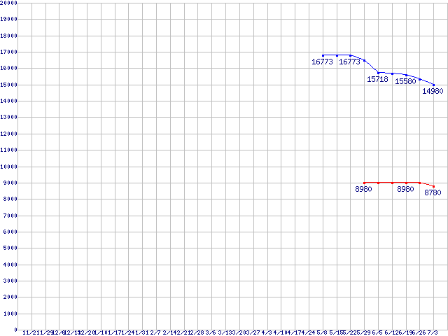 SpinPoint T166 (7200rpm,3Gb/s)の最安値推移