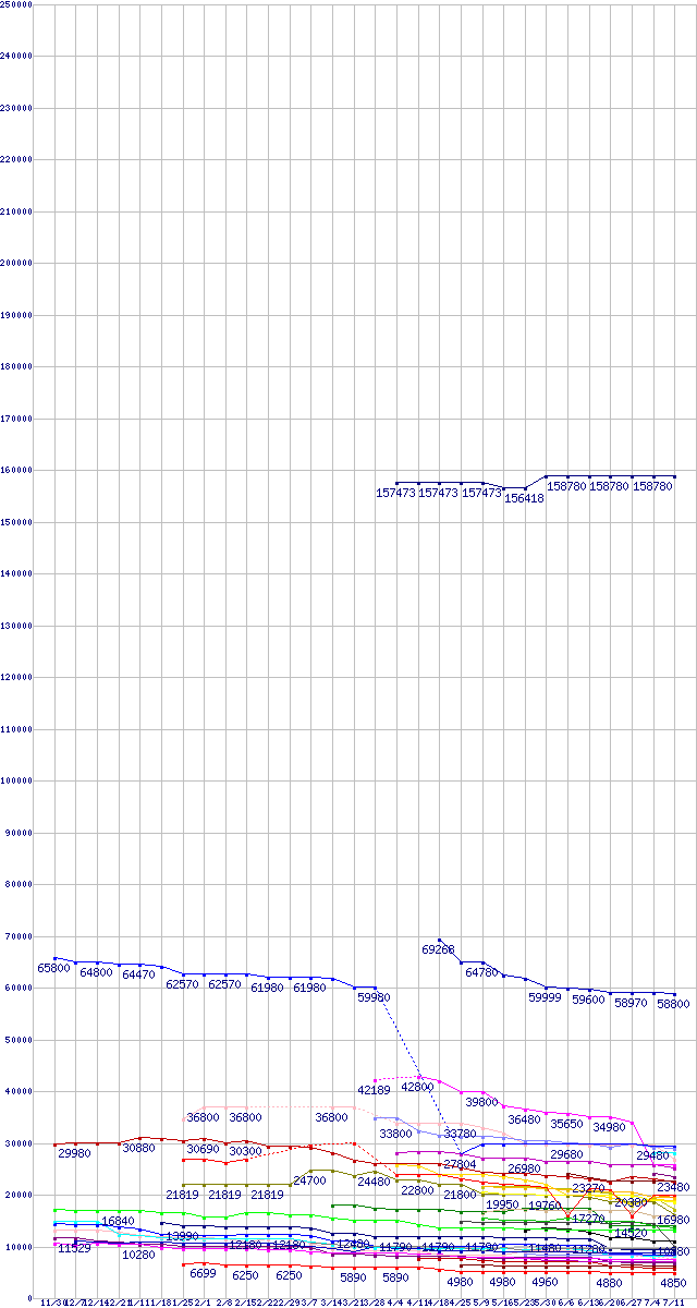 | CPU主要製品の最安値推移 | | | (2007年11月30日~2008年7月11日) |