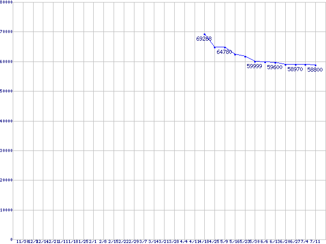 CPU主要製品(最安値6万円以上)の最安値推移