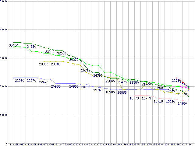 HDD/SSD主要製品(最安値1万5千円~2万円未満)の最安値推移