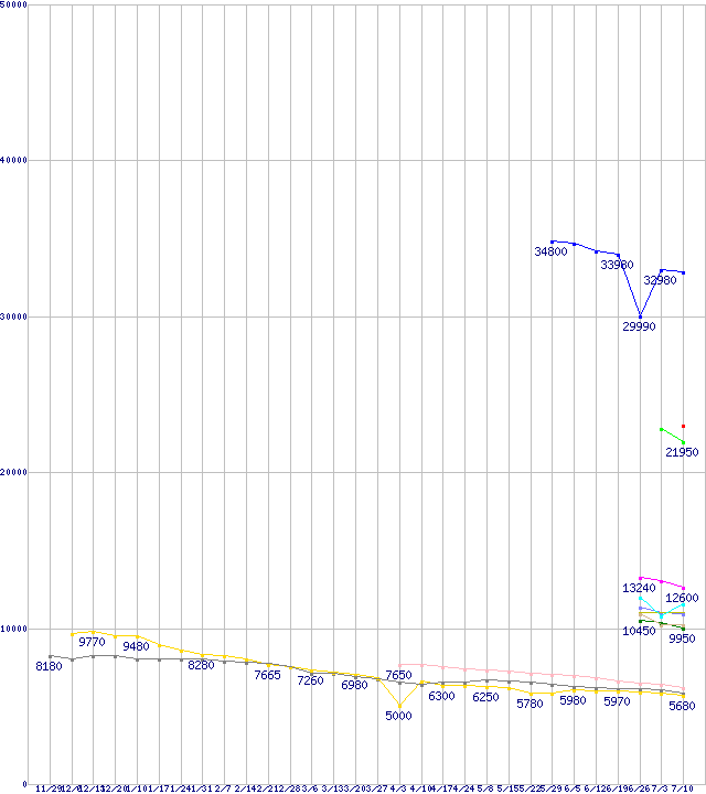 | HDD 300~400GB未満の最安値推移 | | | (2007年11月29日~2008年7月10日) |