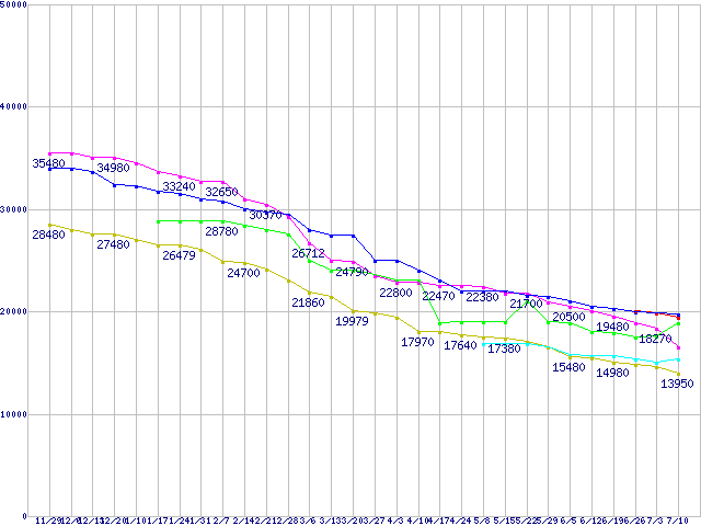 HDD/SSD主要製品(最安値1万円未満)の最安値推移