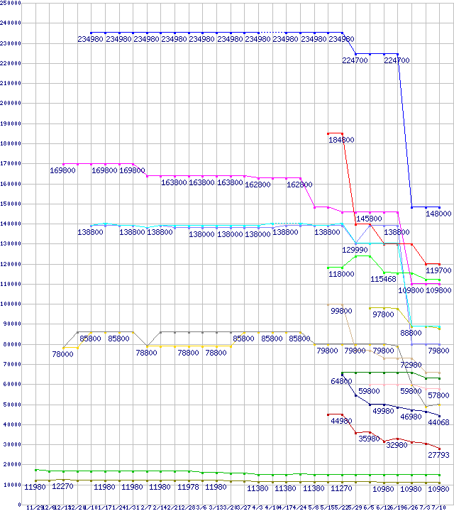 | HDD/SSD 30GB~80GB未満の最安値推移 | | | (2007年11月29日~2008年7月10日) |