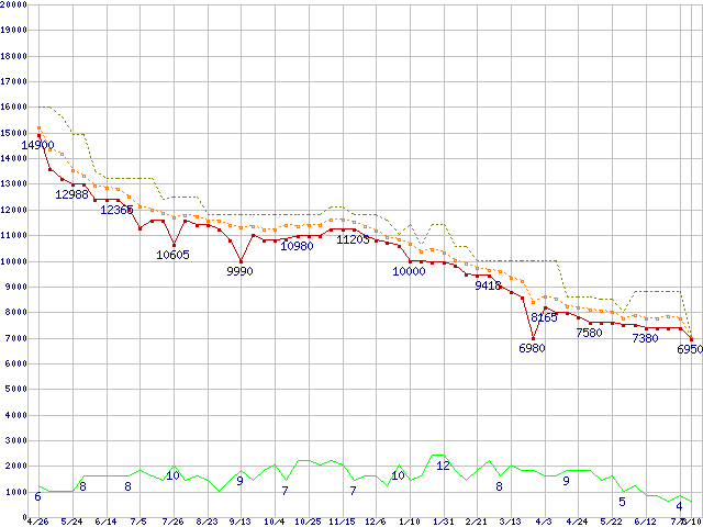 | HD501LJ (500GB,16MB)の価格推移 | | | (2007年4月26日~2008年7月10日) |