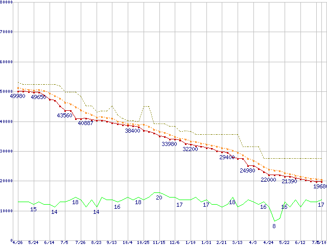 | HDS721010KLA330 (1TB,32MB)の価格推移 | | | (2007年4月26日~2008年7月10日) |