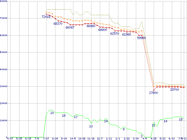 | Core 2 Quad Q6700 (2.66GHz,L2 4MB×2)の価格推移 | | | (2007年4月27日~2008年7月11日) |