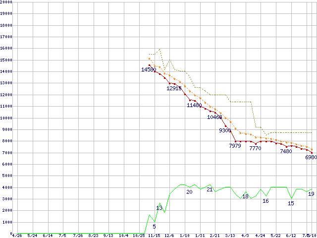 | HDP725050GLA360 (500GB,16MB)の価格推移 | | | (2007年4月26日~2008年7月10日) |