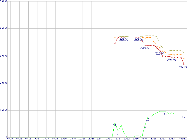 | Core 2 Duo E8500 (3.16GHz,L2 6MB)の価格推移 | | | (2007年4月27日~2008年7月11日) |