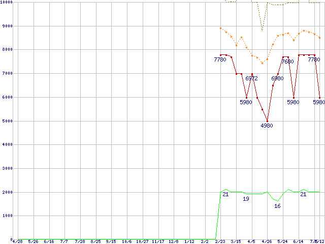 PC2-6400(DDR2-800) DDR2 SDRAM DIMMの最安値推移