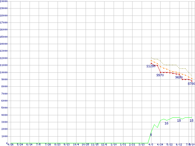 | WD6400AAKS (640GB)の価格推移 | | | (2007年4月26日~2008年7月10日) |