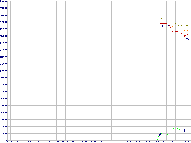 | HD103UI (1TB,32MB)の価格推移 | | | (2007年4月26日~2008年7月10日) |