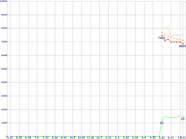 | Athlon X2 4050e (2.1GHz,L2 512KB×2)の価格推移 | | | (2007年4月27日~2008年7月11日) |