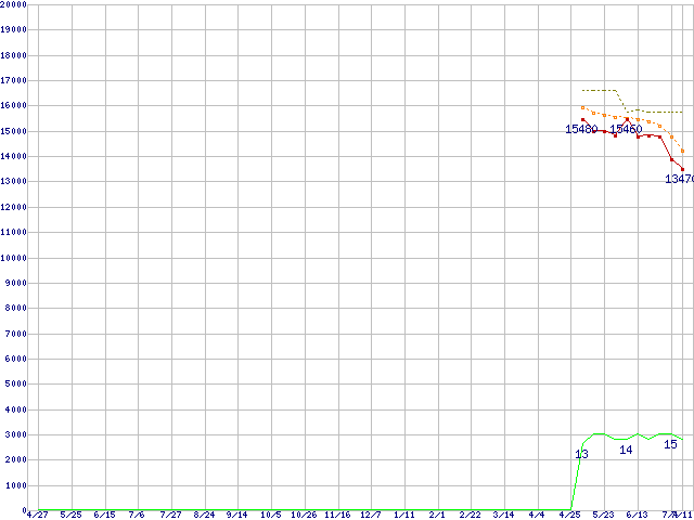 | Phenom X3 8450 (2.1GHz,L2 512KB×3,L3 2MB)の価格推移 | | | (2007年4月27日~2008年7月11日) |
