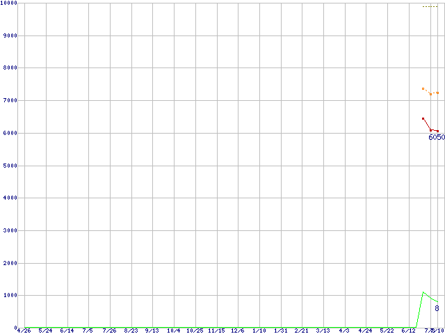| HTS543216L9A300 (160GB,8MB)の価格推移 | | | (2007年4月26日~2008年7月10日) |