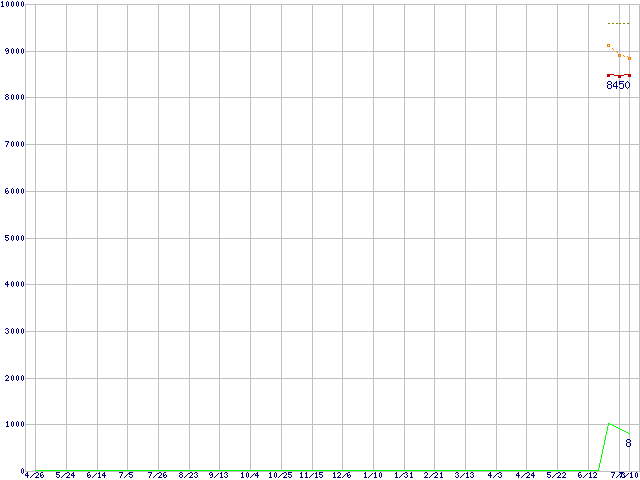 | WD2500BEVS (250GB,8MB)の価格推移 | | | (2007年4月26日~2008年7月10日) |