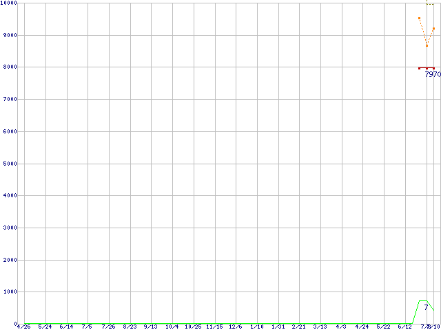 | HM16HJI (160GB,8MB,フラッシュ256MB)の価格推移 | | | (2007年4月26日~2008年7月10日) |