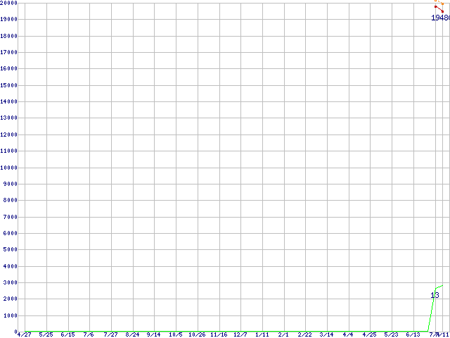 | Phenom X4 9150e (1.8GHz,L2 512KB×4,L3 2MB)の価格推移 | | | (2007年4月27日~2008年7月11日) |