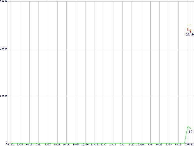 | Phenom X4 9350e (2.0GHz,L2 512KB×4,L3 2MB)の価格推移 | | | (2007年4月27日~2008年7月11日) |