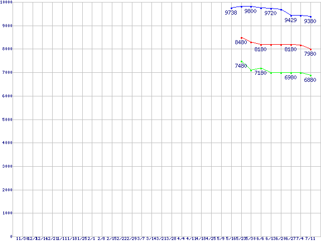 | Socket AM2 (HyperTransport,Dual Core,TDP 45W)の最安値推移 | | | (2007年11月30日~2008年7月11日) |