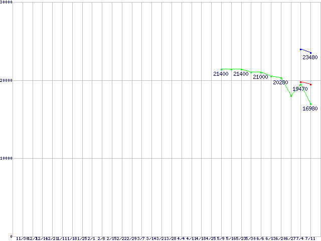 | Socket AM2 (HyperTransport 3.0,Quad Core,TDP 65W)の最安値推移 | | | (2007年11月30日~2008年7月11日) |