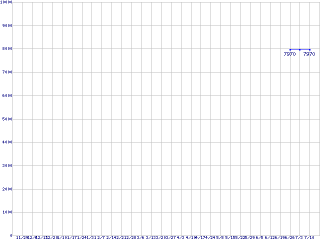 | Spinpoint MH80 (5400rpm,SATA 1.5Gb/s,Hybrid,2.5インチ)の最安値推移 | | | (2007年11月29日~2008年7月10日) |