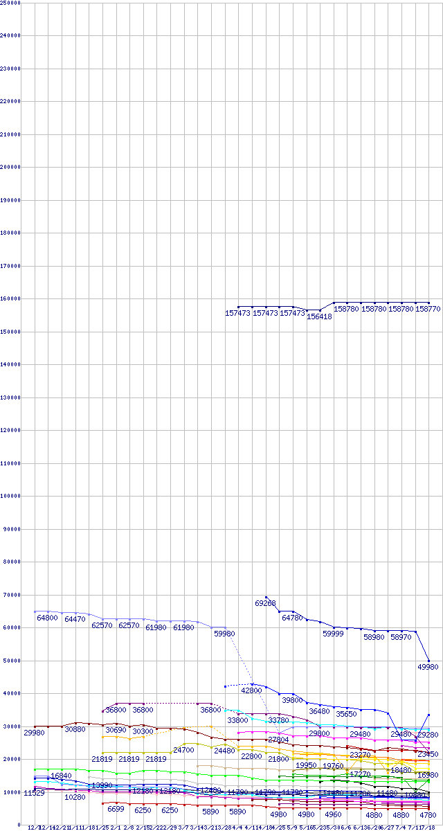 | CPU主要製品の最安値推移 | | | (2007年12月7日~2008年7月18日) |