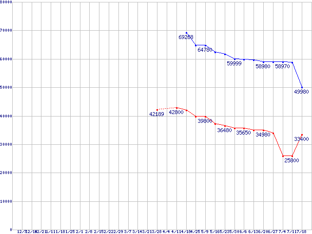 CPU主要製品(最安値3万円~6万円未満)の最安値推移