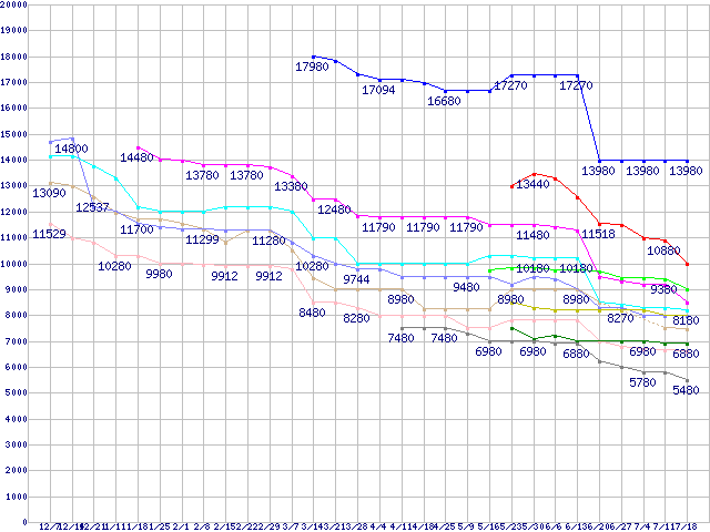 | AMD系CPUの最安値推移 | | | (2007年12月7日~2008年7月18日) |