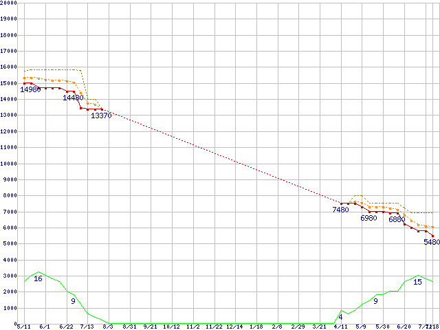 | Athlon X2 4600 (2.4GHz,L2 512KB×2)の価格推移 | | | (2007年5月11日~2008年7月18日) |