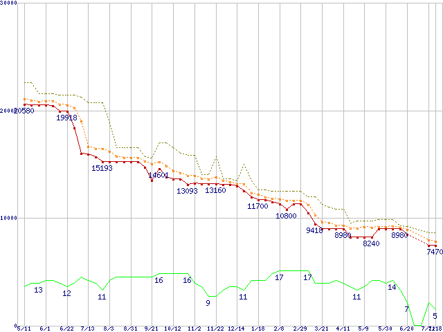 | Athlon 64 X2 5000+ (2.6GHz,L2 512KB×2)の価格推移 | | | (2007年5月11日~2008年7月18日) |