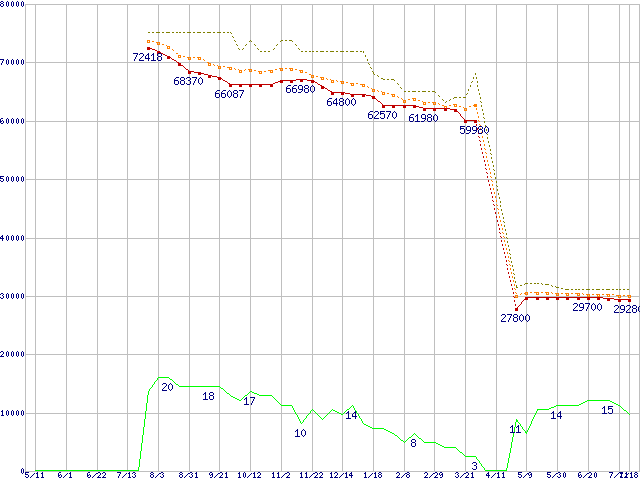 | Core 2 Quad Q6700 (2.66GHz,L2 4MB×2)の価格推移 | | | (2007年5月11日~2008年7月18日) |