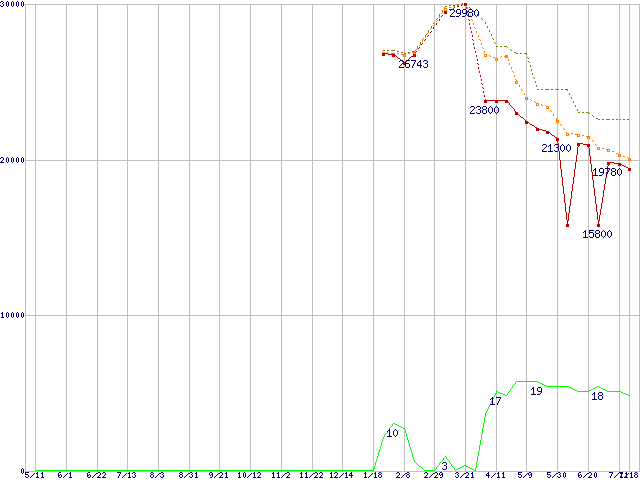 | Core 2 Duo E8400 (3GHz,L2 6MB)の価格推移 | | | (2007年5月11日~2008年7月18日) |