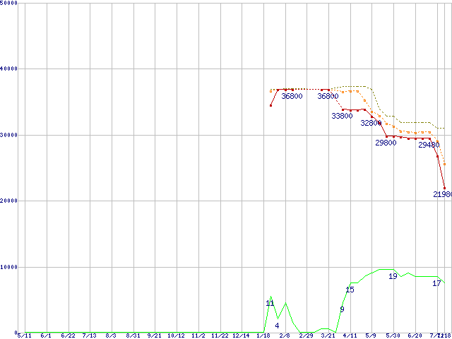 | Core 2 Duo E8500 (3.16GHz,L2 6MB)の価格推移 | | | (2007年5月11日~2008年7月18日) |