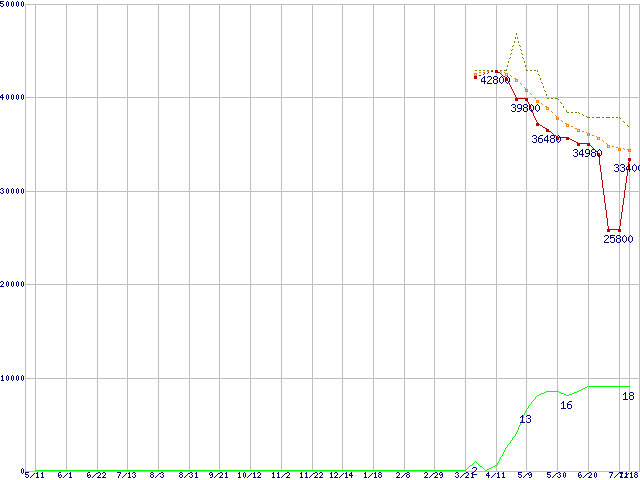 | Core 2 Quad Q9450 (2.66GHz,L2 6MB×2)の価格推移 | | | (2007年5月11日~2008年7月18日) |