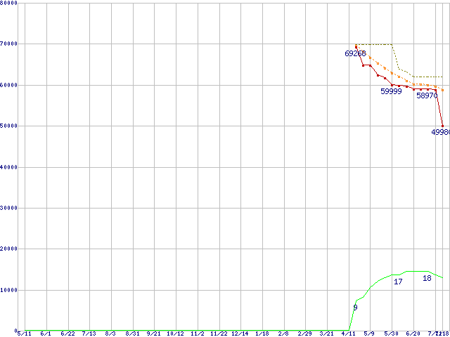 | Core 2 Quad Q9550 (2.83GHz,L2 6MB×2)の価格推移 | | | (2007年5月11日~2008年7月18日) |