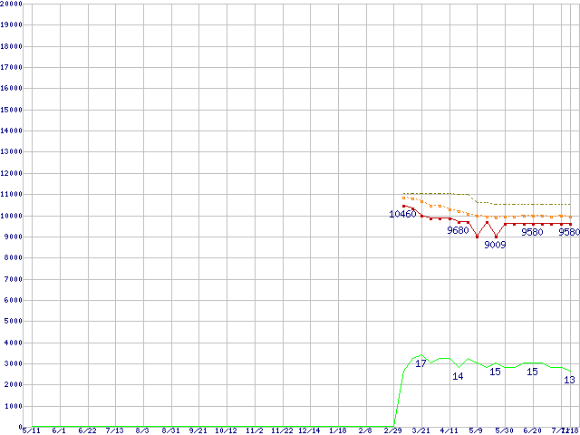 | Pentium Dual-Core E2220 (2.4GHz)の価格推移 | | | (2007年5月11日~2008年7月18日) |