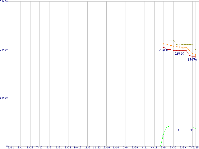 | Phenom X3 8750 (2.4GHz,L2 512KB×3,L3 2MB)の価格推移 | | | (2007年5月11日~2008年7月18日) |