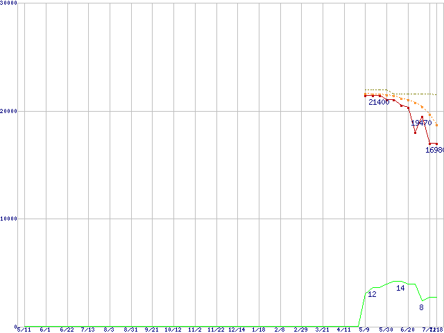 | Phenom X4 9100e (1.8GHz,L2 512KB×4,L3 2MB)の価格推移 | | | (2007年5月11日~2008年7月18日) |